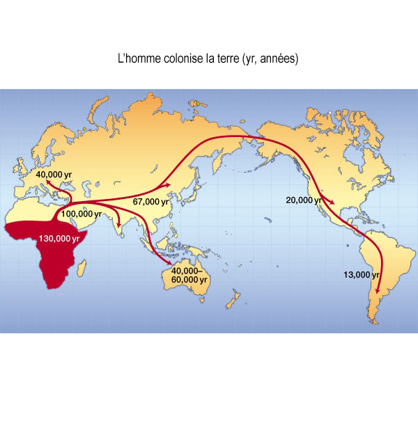 Qu’est-ce qui a poussé ces hommes à s’étendre de la sorte, aller plus loin, encore et encore, jusqu’à coloniser la terre entière ? Rien ne les a freinés dans leur avancée, ni les milieux les plus défavorables, ni les conditions les plus hostiles, ni la plus forte chaleur ni le froid le plus rude, ni l’immense forêt ni l’infini désert. Voilà pourquoi l’homme est partout sur terre, du Nord au Sud, de l’Est à l’Ouest. Il est vrai que cela a pris du temps, des milliers d’années pour chacune de leurs étapes.